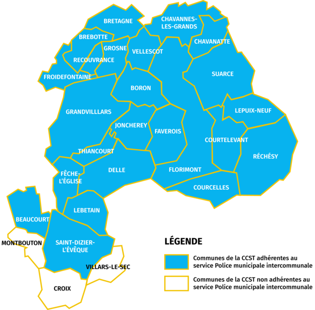 24 des 27 communes du Sud Territoire adhèrent à ce jour au service Police Municipale Intercommunale qui, par une mise en commun des outils et des moyens, permet d’assurer un niveau de sécurité équivalent voire supérieur sur les territoires concernés. Si la gestion administrative du service revient à la CCST, les maires des communes adhérentes conservent leur pouvoir de police.